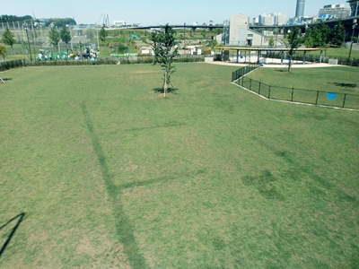 横浜初のドッグラン。週末はとてもにぎやかになる