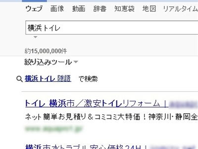 そこで、今回の調査依頼「横浜駅とその周辺の駅ビルにあるオシャレなトイレ」を探し出すべく、早速インターネットで「横浜 トイレ」を検索。するとなぜか「おすすめキーワード」に「横浜 トイレ 隠語」の文字が。