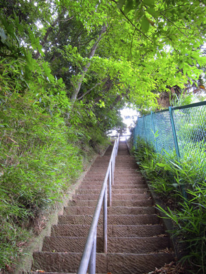 急階段に石碑。キニナルキーワードである。少し検索してみると、気になってのぼってみたという人の記事などもいくつかヒットした。グーグルストリートビューで見てみると確かに興味をそそる階段だ。さっそく自分の目で確かめるべく、現地へ行ってみることにした。