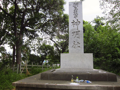 階段の上には神明社という神社があり、石碑はかつて建っていた木造の祠に替わって建てられたものだった。