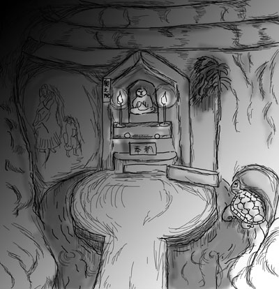 本尊一願弘法大師の祀られた間(再現イラスト:ナリタノゾミ)