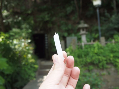 拝観料(400円)を支払うとロウソクが配布される。洞内を、わずかな数の電灯とロウソクの灯かりを頼りに歩き、進むことになる。