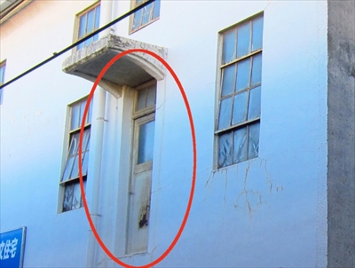 反対側も同じように円窓があり、建物は山を削るようにして建てられていることがわかる