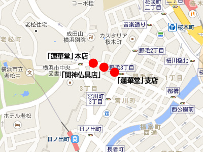 先ほど、最大で7軒の仏具店があったと書いたが、実際には「蓮華堂」をはじめとした4店舗が同地で支店を徐々に展開し、「仏具の街」を形成していった。しかし、高度成長期を迎えると、神奈川県内の各地にも仏具店が建ち始め、野毛坂は徐々に集客力を失っていったらしい。