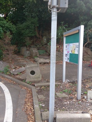 ファミリーマートから信号を渡り、数十メートルの場所に掲示板を発見!