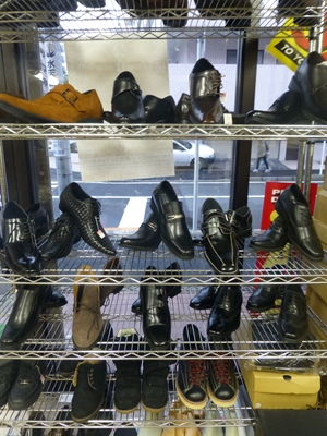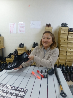 実店舗はこの平沼橋店と、東京駅八重洲口のすぐ近くにある東京銀座店の2ヶ所でネット販売もしている。1ヶ月の販売足数は、平沼橋店は約30足、東京銀座店では300足以上、ネットショップだと、なんと1000~1200足も売れるらしい。実際、ビルの広告を見たという問い合わせや来店というのもあるようだが、どれだけ来店・購入しているかは「定かでない」とのこと。客層は男性客が大半だという。