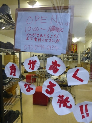 お店のオープンは21年前の1992(平成4)年。店内の靴はすべてインソールが入った「背が高くなる靴」で、プラス5cmから、7cm、8cm、10cm、12cmの靴がある。ちなみに店名も「背が高くなる靴」だ。現在販売中の靴は200種類以上。ネットと店舗で販売しているが、店舗の方が種類も豊富とのこと。