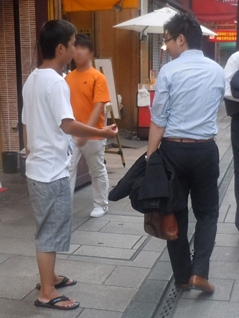 栗屋台の隣に栗屋台があって、その向かいに栗屋台があってその隣に栗屋台があったりするのだから、激戦区もはなはだしい。さらに、中国人の売り子が道行く人を「サービススルヨ」などと甘い言葉で誘惑し、試食させ、巧みに交渉していく。
