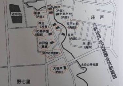 八軒谷戸の周辺地域に住む人たちは、家の地形などの特徴をもとに付けられる称号である「屋号」で呼ばれていたそうで、北條さんに「八軒谷戸にある屋号のうち、どの八軒を指して『八軒谷戸』と呼ぶか」をご存じか聞いてみたところ、「神戸(ごうど)」さん・「新家(あたらしや)」さん・「神主(かんぬし)」さん・「谷戸の前」さん・「下の井戸窪」さん・「井戸窪」さん・「谷戸の元屋敷」さん・「大谷戸」さんであるという。