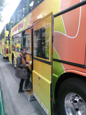 ・・・前から二列目の通路側に座る。二階建てのバスは車高が高く、眺めがいい。