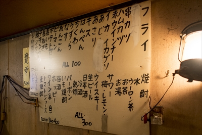 フライは100円均一。生ビールや酒はほぼすべて300円という強烈な安さ