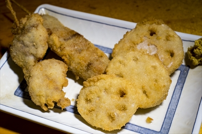 一番人気の「串カツ(2本100円)」と「レンコン(3つで100円)」