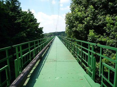 3つの鋼製水路橋で1番の高さを誇る梅田谷戸水路橋(うめだやとすいろきょう)。その上からは、自然豊かな周囲の風景を見渡すことができた!