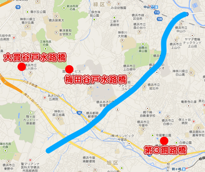 鶴ヶ峰の第3鋼路橋、大貫谷戸水路橋の記事を読みました。横浜市内にはほかにも梅田谷戸水路橋がありますが、橋の上からはどんな眺めなのでしょうか?キニナリます!!(はまんさんのキニナル)
