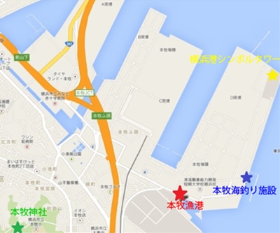 本牧ふ頭は、横浜港内で最大級のコンテナターミナルであるが、本牧漁港のあるD突堤には、本牧海釣り施設、横浜港シンボルタワーなどの一般の人が楽しめる施設もある。