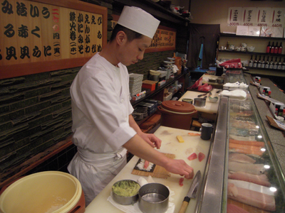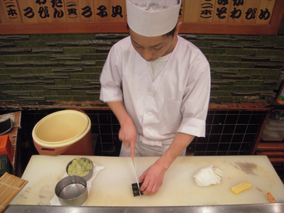 シャイな本田店長に代わり、撮影時は若手の板前ヨシさんが鉄火巻きを作る