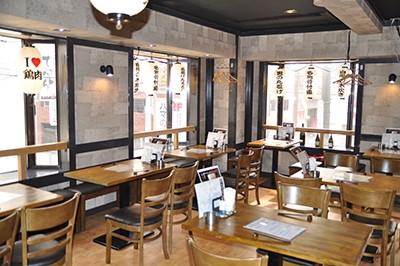 かなり広めな店内は席数80席。立食なら100名ほどの収容が可能で、貸切りパーティが行われることもあるそう。