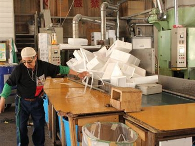 続いてやってきたのは、発泡スチロールの再処理施設。