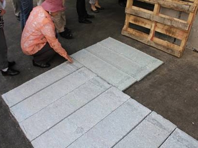 使用済み発泡スチロールを機械で砕き