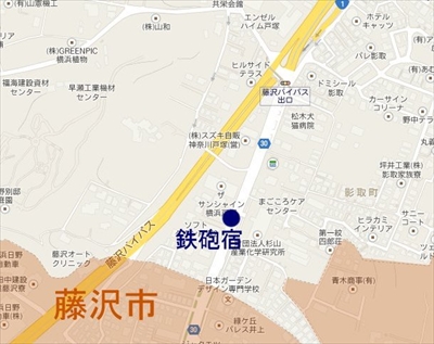 「鉄砲宿」バス停は、藤沢駅北口からバスで10分ほど