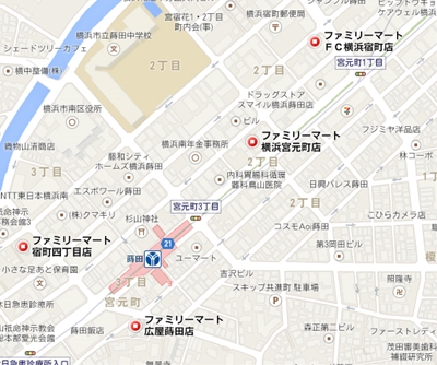 しかし、事前に調べてみると、横浜市営地下鉄蒔田駅周辺には徒歩5分圏内に4つもファミリーマートがあるのだ。