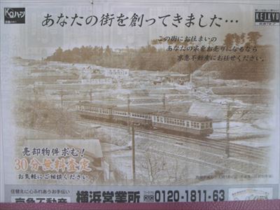 改札の向こう側に不動産屋の看板が見える。このころから分譲地販売が盛んになりはじめ、不動産屋が軒を連ねていた。1958(昭和33)年、森が丘住宅地(磯子区)の宅地分譲を皮切りに、京急による上大岡駅周辺は小規模な宅地開発や、京浜工業地帯の大企業の社宅建設が次々進められた時期である。