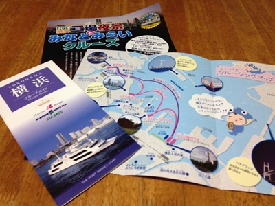 「港・ヨコハマ」の観光をクルージングで楽しむ人も多く、イベントクルーズのパンフレットもいっぱい!