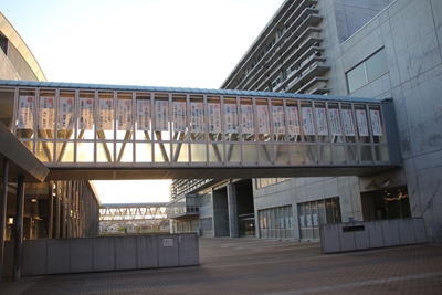 こちらが正門。渡り廊下の窓には部活などの優秀者の名前が張り出されている