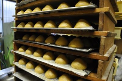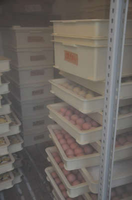 一度に5000個ものおまんじゅうを作ることができる秘密は、それらを収めるのに十分な大きさの3台の大型冷凍庫の存在。お菓子のベースを作り保存することで、効率化を図っているという。