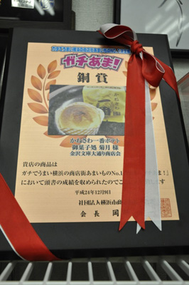 「菊月」のスイートポテト「かねさわ一番ポテト」は、「横浜金沢ブランド」に選ばれているほか、「街なかちょい土産(全10商品)」に認定、2013年に実施された「ガチでうまい横浜の商店街あまいものNO.1決定戦(ガチあま!)銅賞」を獲得した商品だ。