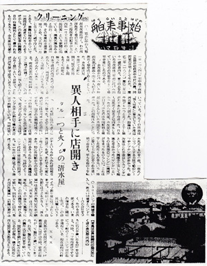 脇澤金次郎の店「清水屋」は個人のお客が少なく、大きなホテルがお得意様であったとのこと。現在ではもう位置もわからぬ清水屋だが、往時は多くの洗濯物が運び込まれたことだろう。