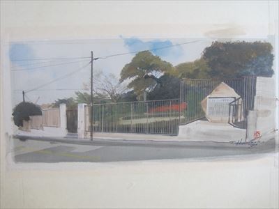 谷戸坂にクリーニング碑ができたとき、脇澤さんの家では画家に頼んで絵を描いてもらったとのこと。その絵を見せてもらった。