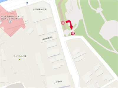 みなとみらい線「元町・中華街駅」を降りて5~6分あまり歩くと「港の見える丘公園」にたどりつく。その脇にある上り坂が谷戸坂(やとざか)。しばらく歩いて左に曲がると、投稿にある碑が目に入る。