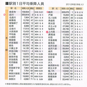 (京急沿線駅の)駅別1日平均乗降人員(京急資料より)