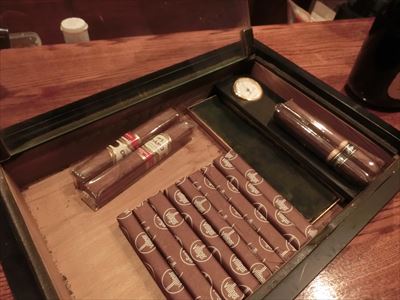 ほろ酔いでいい気持ち、周りに気兼ねなくシガーが味わえる。いい隠れ家だな〜と。