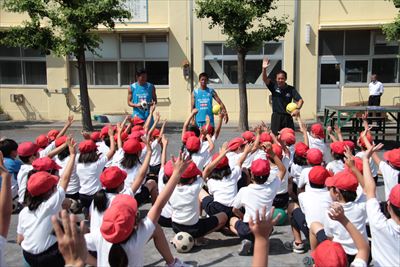 小学生へサッカーの楽しさを伝える「マリノスキャラバン」の様子