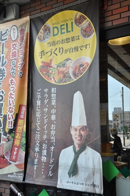 店先の巨大ポスター。シェフ監修のお惣菜とは