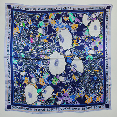 「横浜スカーフ」とは、生糸業や絹製品の輸出が盛んで、捺染技術者が数多くいたという開港後の横浜で生まれた伝統工芸。上の写真は、横浜スカーフコンテストの親善大使賞を受賞したもの。