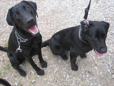 検疫所内にいる検疫探知犬のハーパー(左)とビーン(画像提供:動物検疫所)