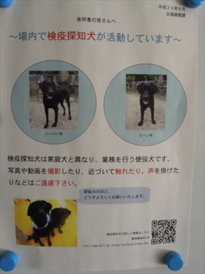 検疫探知犬は、主要空海港にて手荷物の中から動物検疫検査を必要とする肉製品などを嗅ぎ分けて発見する訓練をされた「働くわんこ」とのこと。