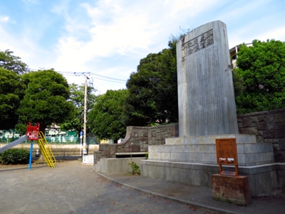 とても大きな「ビール産業発祥」の碑が立っている