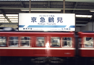 “京急鶴見駅”の駅名標(1986年当時の写真:京急電鉄社史より)