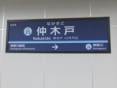 仲木戸駅の駅名標は「紺地に白と水色のライン」左側に書かれているのが駅番号