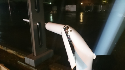 鉄製のポールが折れるほどの強風だった台風19号(13日午後8時ごろ、神奈川区)