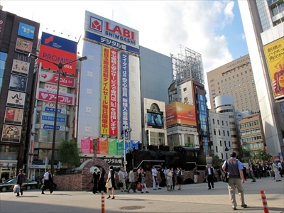 ステージの設営は完成しだが人通りはまだ疎(まば)ら