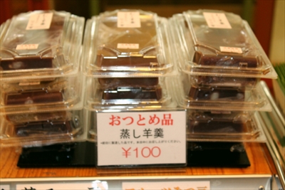 店頭に目をやって筆者はまたまたびっくり! 「蒸し羊羹」がなんと100円!!