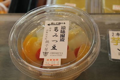 筆者はもちろん買いました! 100円の蒸し羊羹。もちもちと弾力があって、控えめな甘さ。とってもおいしかったです。このお味なら、250円出したとしても納得できる。ちなみに、店頭で買える生菓子は、あんみつのほかに串団子、玉羊羹、大福、芋羊羹・・・。その中でも若菜さんのイチオシはこの「葛みつ豆(330円)」。