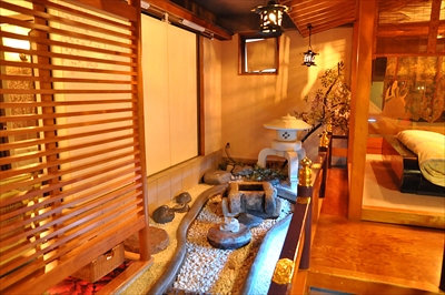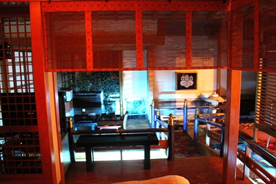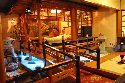 ザキヤマは呆然、編集部・山岸は「おおー! す、すご、すごーい!!」を連呼。部屋の中には橋が渡されていて、巻物に出てくる貴族のお屋敷の一部のよう。あまりの雅さに「いとをかしー!!」と部屋の中を走り回りたくなってしまったが、ぐぐっと抑えて「迎賓館」二代目社長の村野さんにお話をお伺いした。