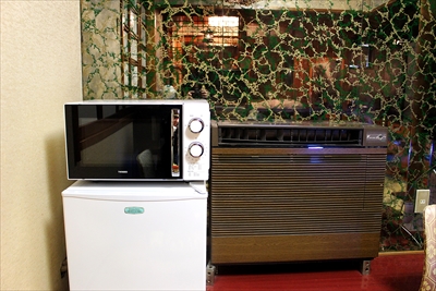 電子レンジ・冷蔵庫完備。そして年代物のヒーターも