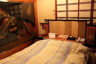 ベッドルームには日本女子の絵が! 誰が描いたんだろう